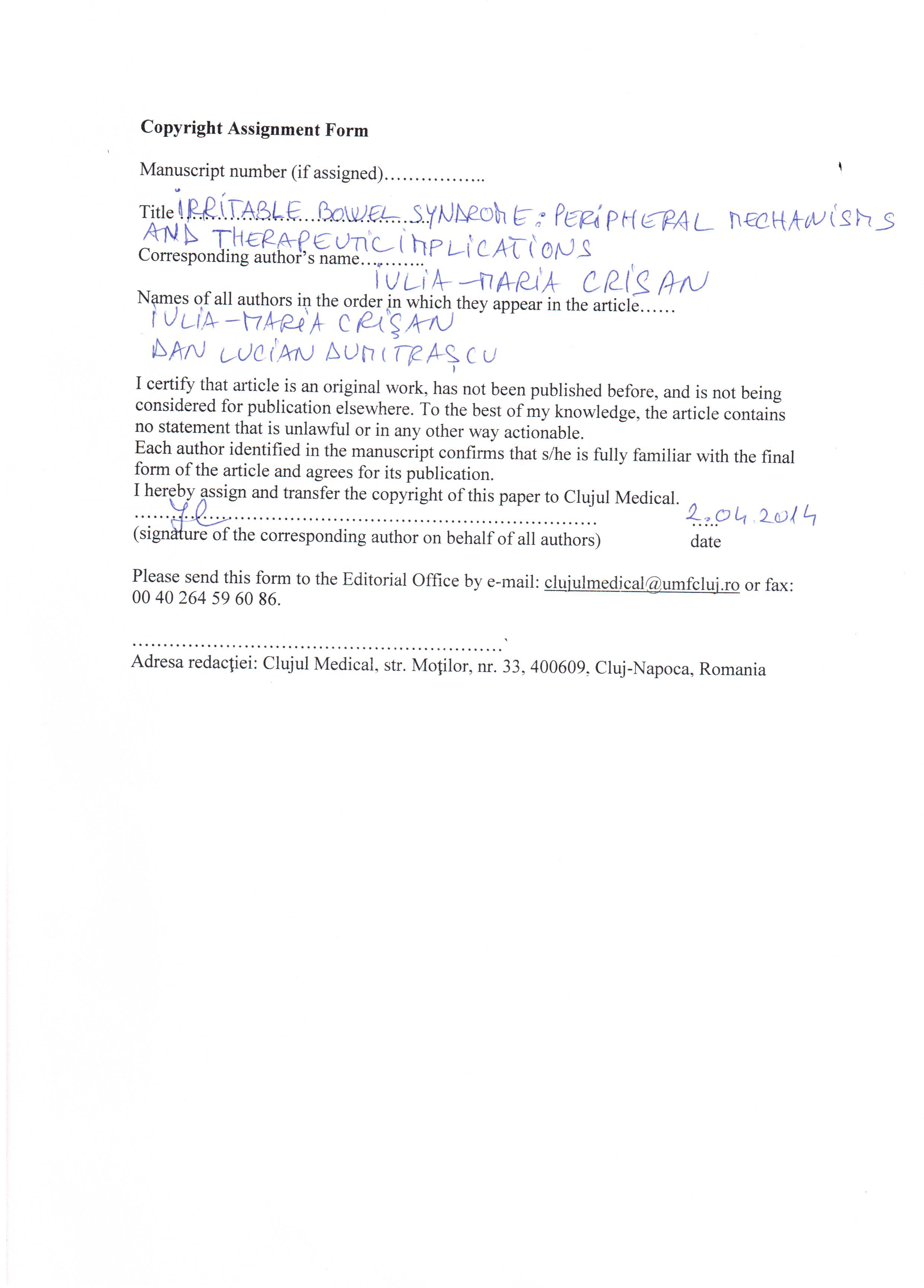 irritable bowel syndrome, pathogenesis, peripheral mechanismsAbstract