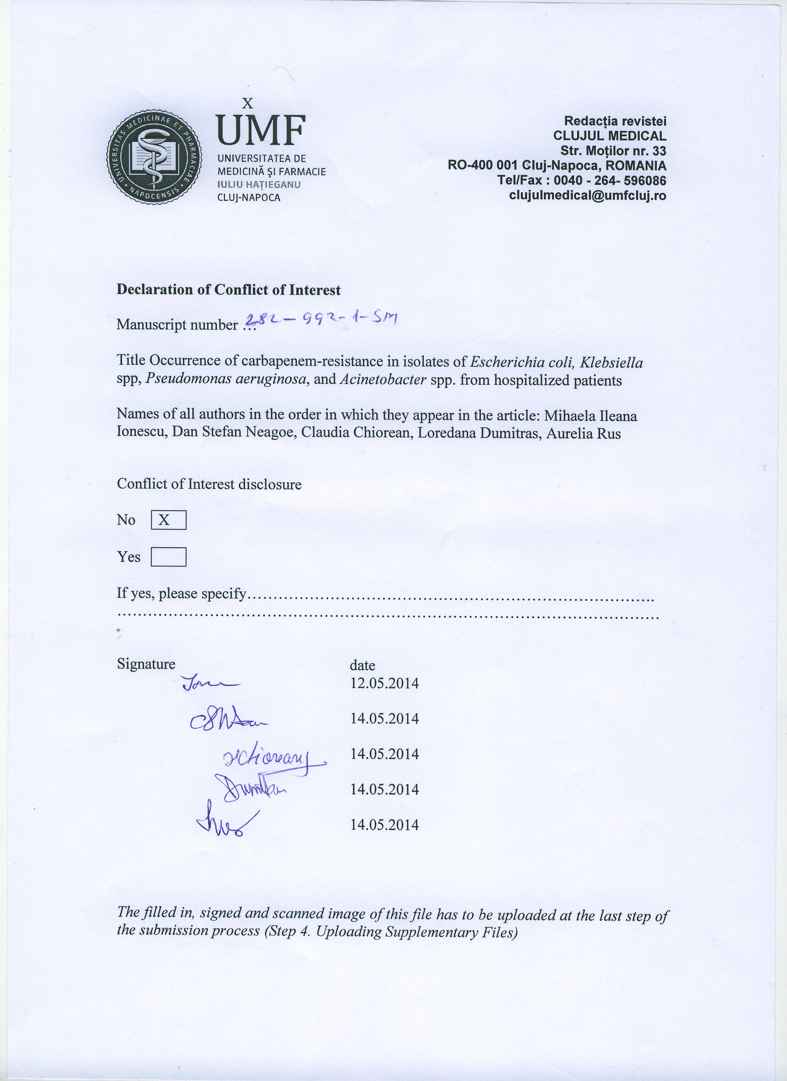 Materials and methods. From January 2012 to November 2012 and from May 2013 to November 2013, we evaluated 566 strains (Acinetobacter spp., Pseudomonas aeruginosa, Escherichia coli, and Klebsiella spp.). All isolates were tested and analyzed according to their antibiotic resistance phenotypic pattern. Laboratory results were correlated with data regarding admission in different clinical wards.