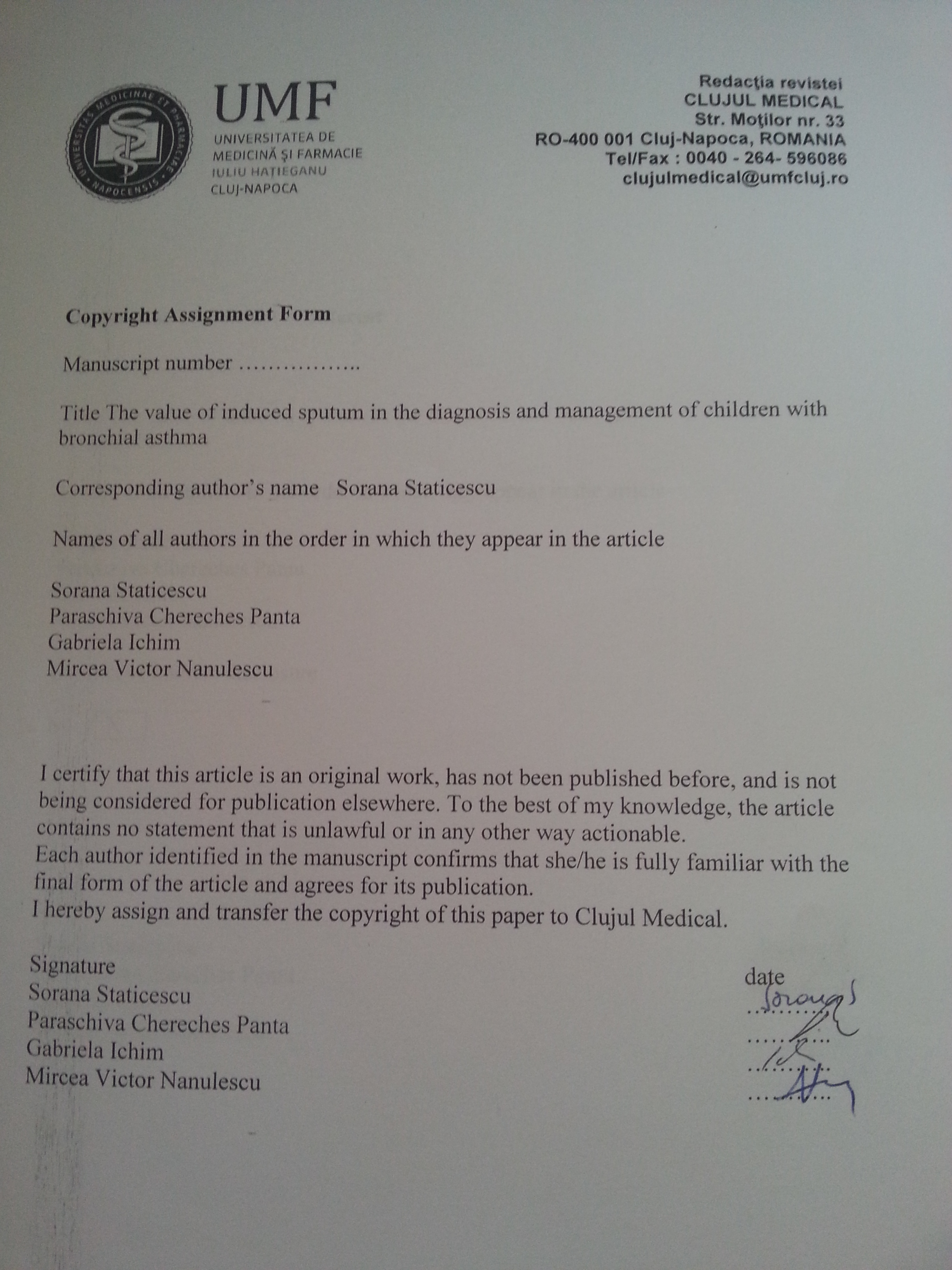 The authors are required to transfer the copyright of the published paper to the journal. This is done by agreeing to sign the Copyright Assignment Form. Whenever the case, authors are also required to send permissions to reproduce material (such as illustrations) from the copyright holder.