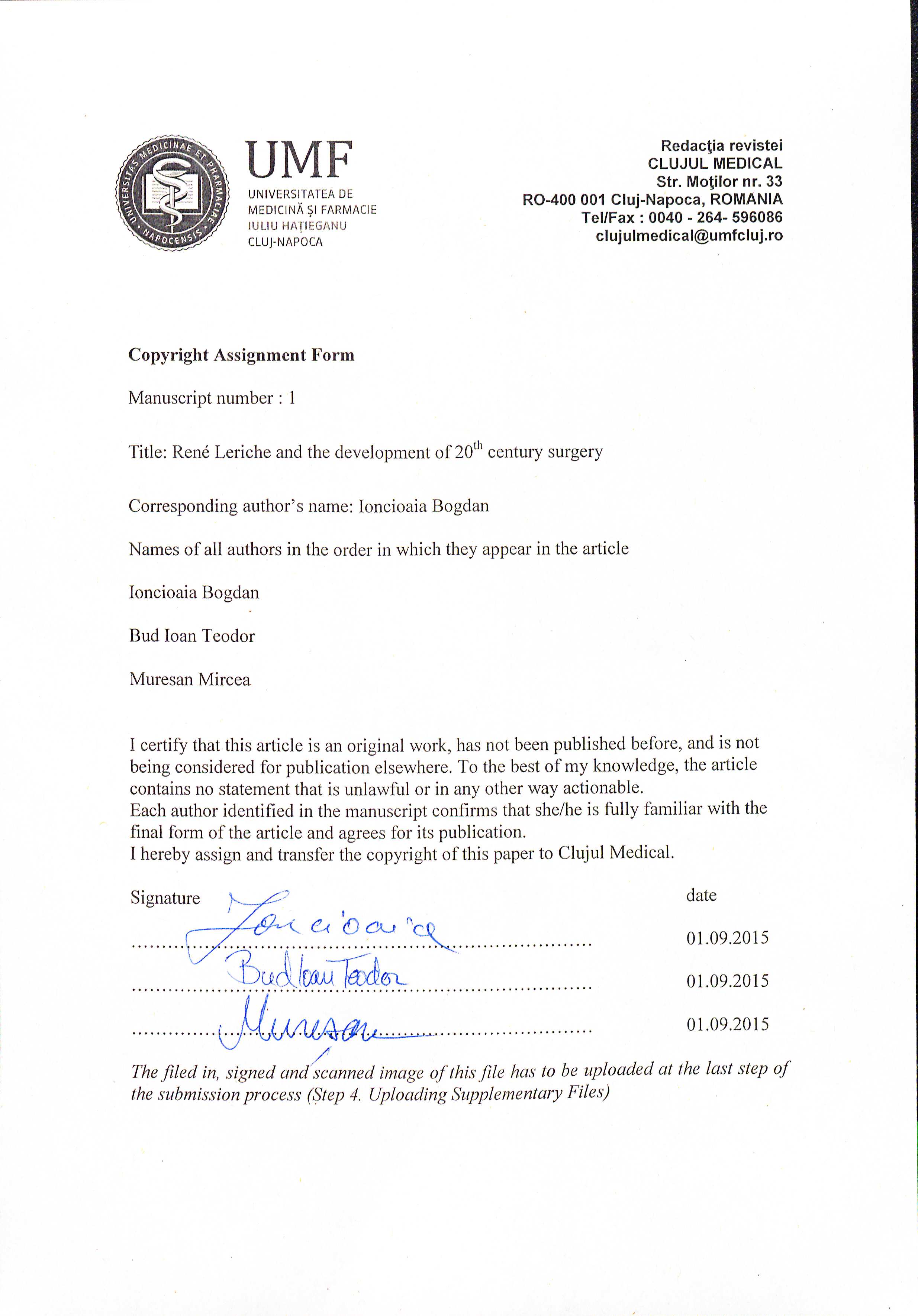 The authors are required to transfer the copyright of the published paper to the journal. This is done by agreeing to sign the Copyright Assignment Form. Whenever the case, authors are also required to send permissions to reproduce material (such as illustrations) from the copyright holder.