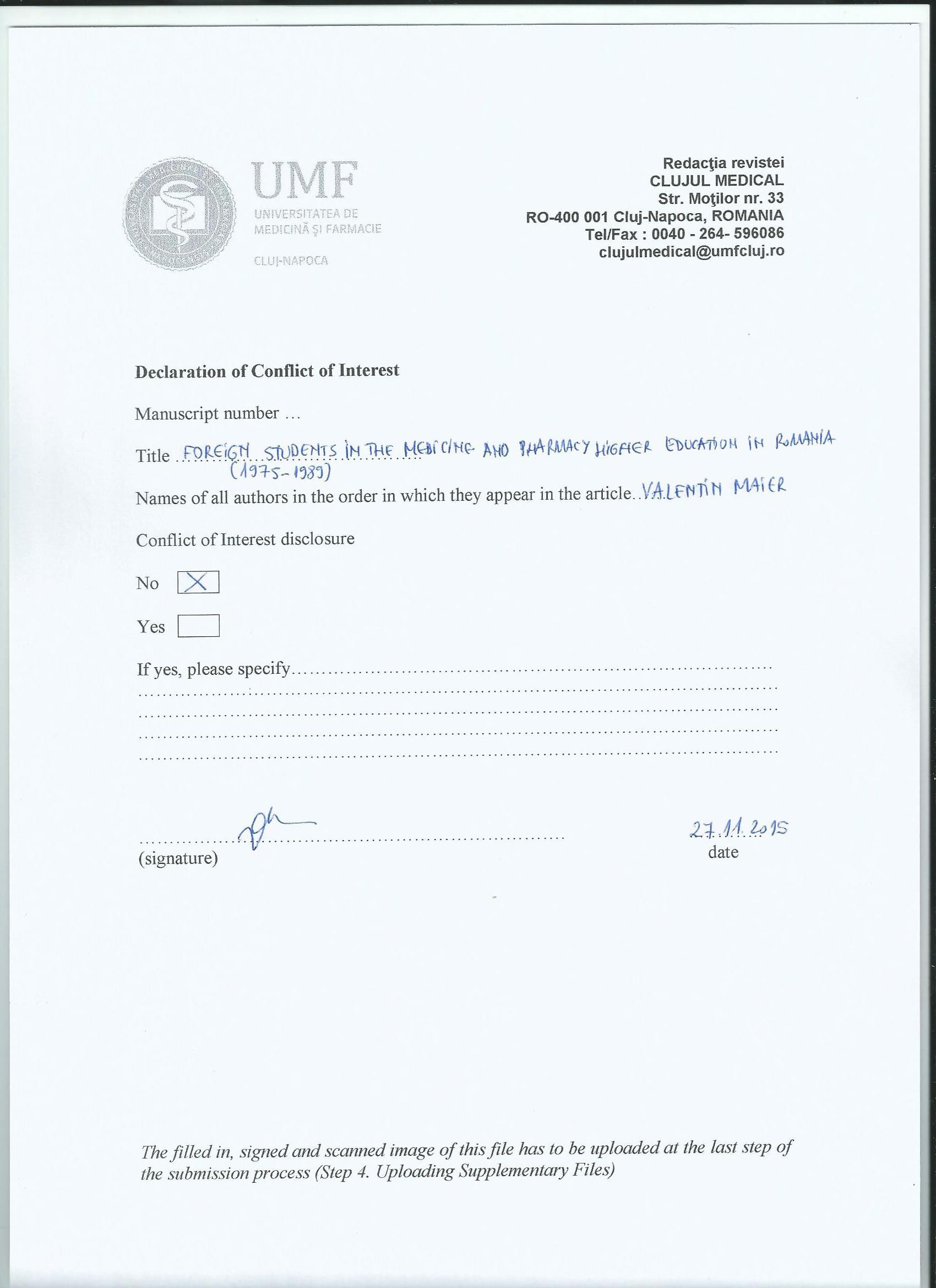 Foreign Students Enrolled in the Medicine and Pharmacy Higher Education in Romania (1975-1989)