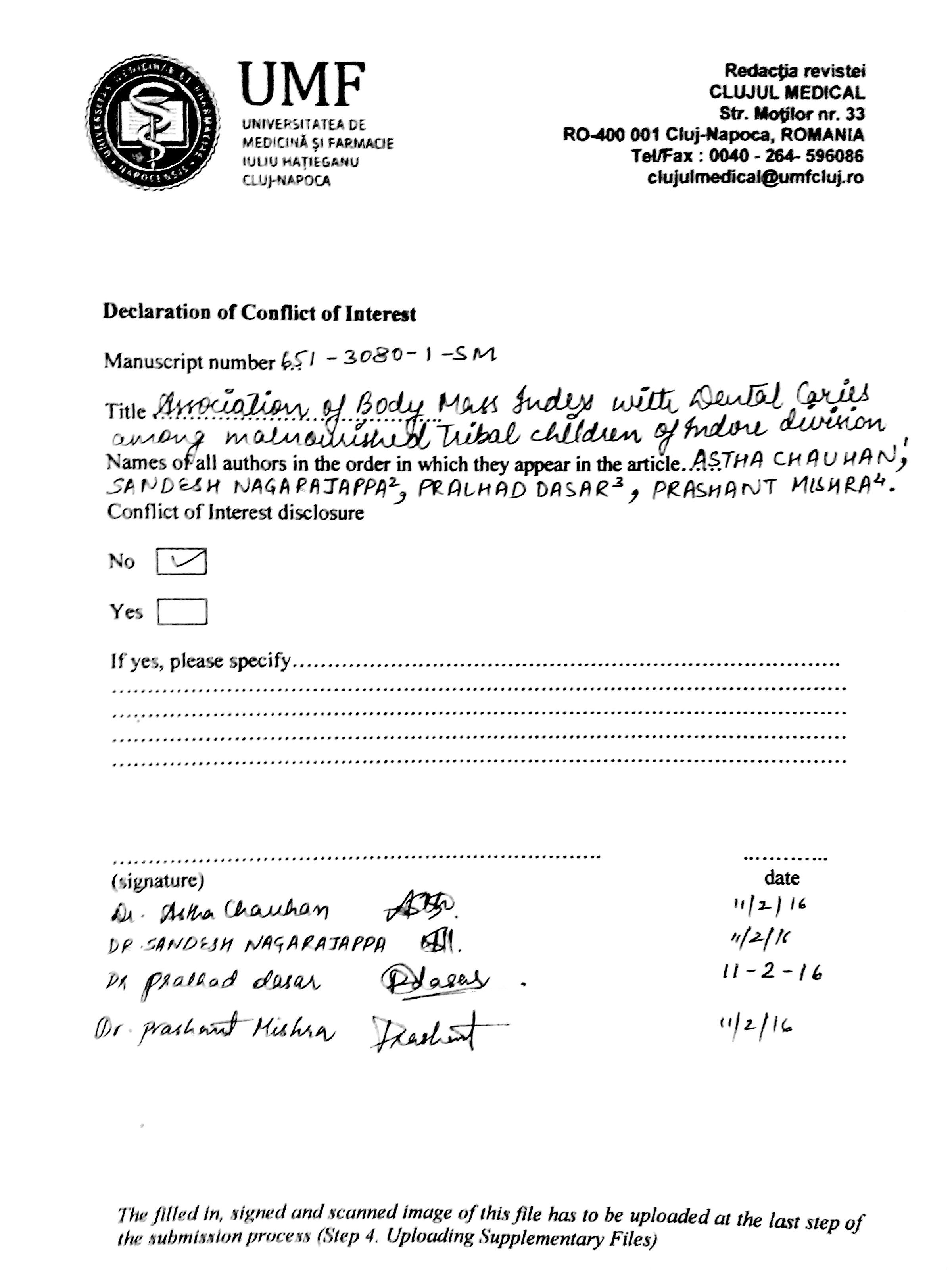 Association of body mass index with dental caries among malnourished tribal children of Indore division
