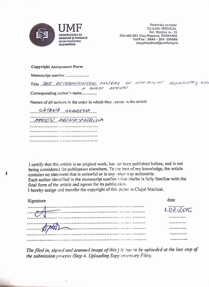 The authors are required to transfer the copyright of the published paper to the journal. This is done by agreeing to sign the Copyright Assignment Form. Whenever the case, authors are also required to send permissions to reproduce material (such as illustrations) from the copyright holder.