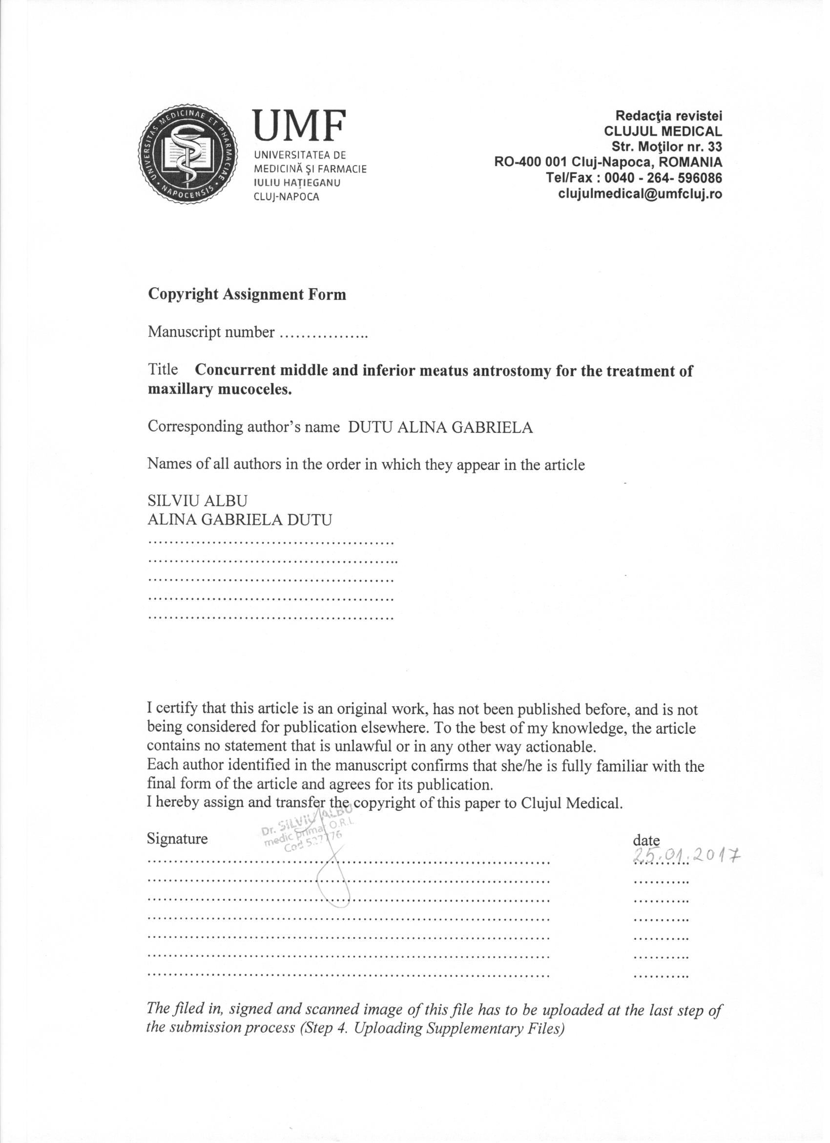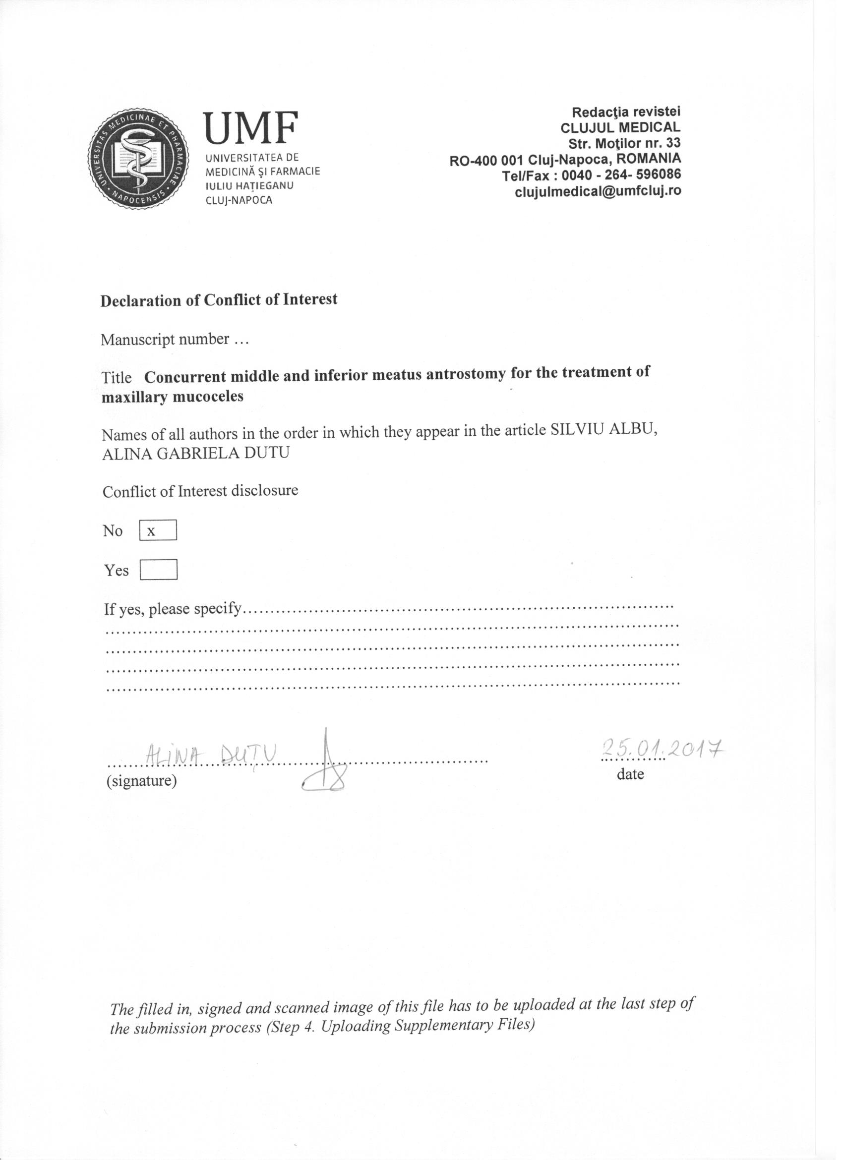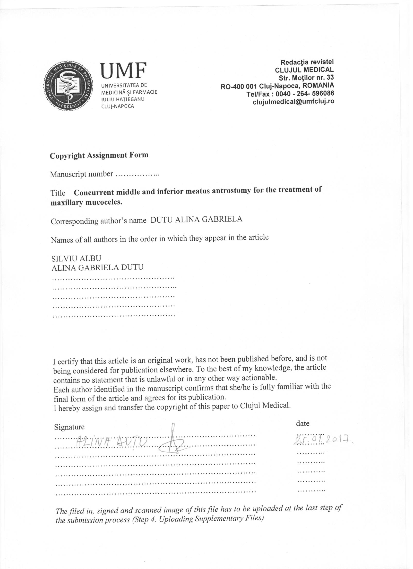 Conclusion. In conclusion the results of our small series support the worth of using middle and inferior antrostomy when dealing with maxillary mucoceles.