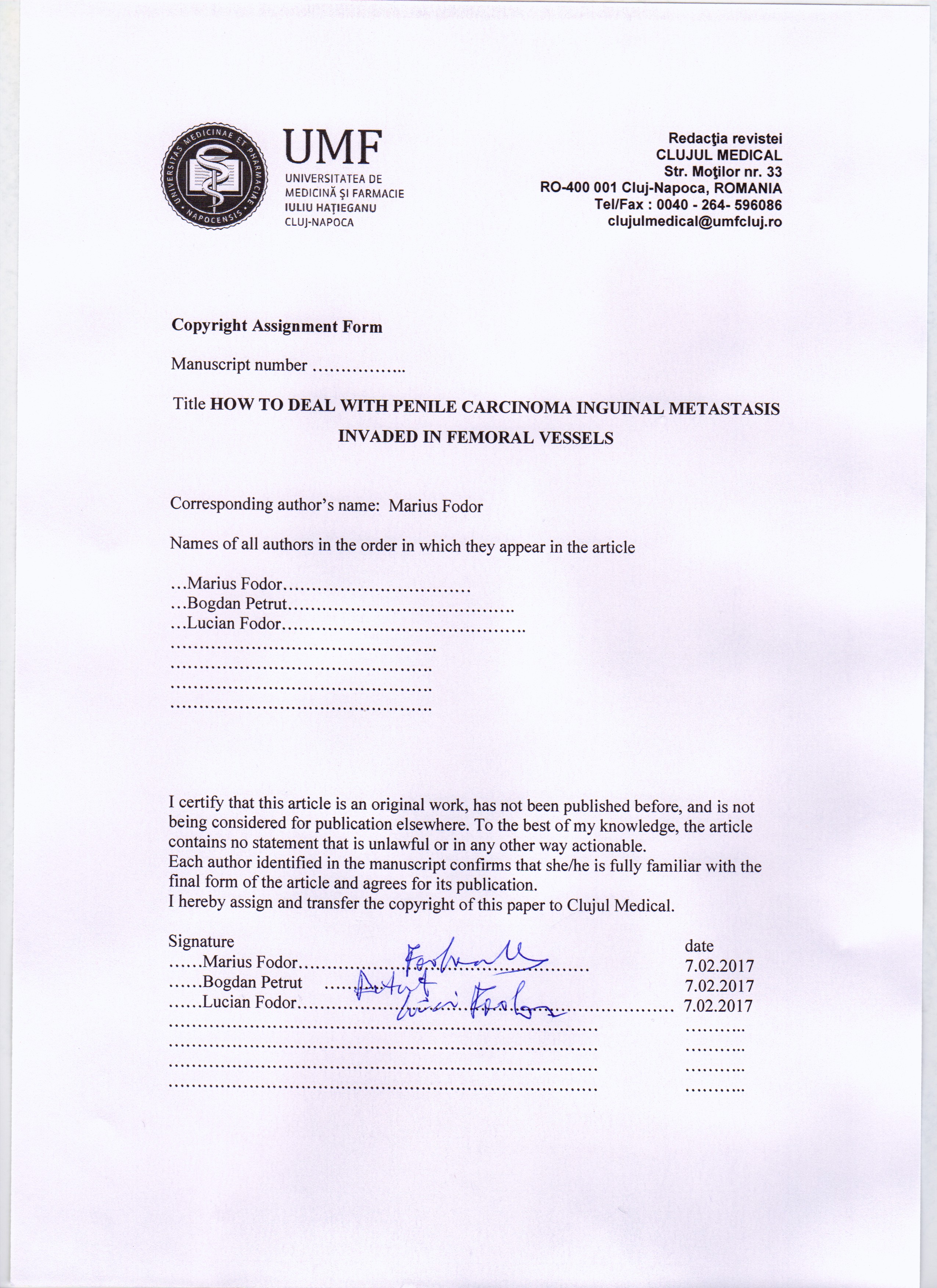 The authors are required to transfer the copyright of the published paper to the journal. This is done by agreeing to sign the Copyright Assignment Form. Whenever the case, authors are also required to send permissions to reproduce material (such as illustrations) from the copyright holder.