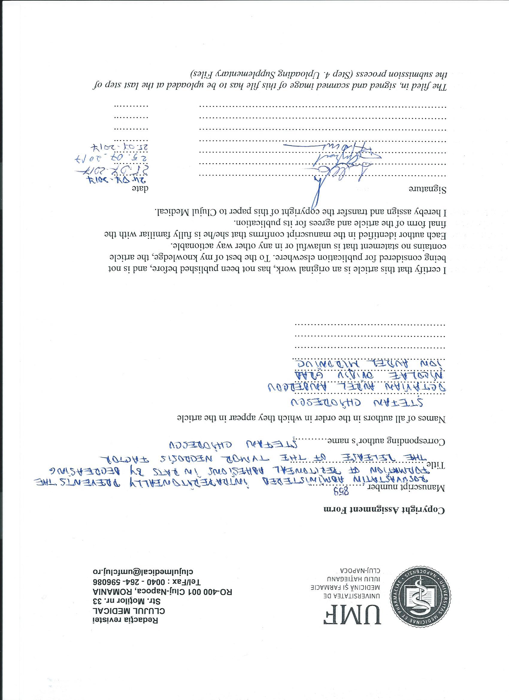 The authors are required to transfer the copyright of the published paper to the journal. This is done by agreeing to sign the Copyright Assignment Form. Whenever the case, authors are also required to send permissions to reproduce material (such as illustrations) from the copyright holder.