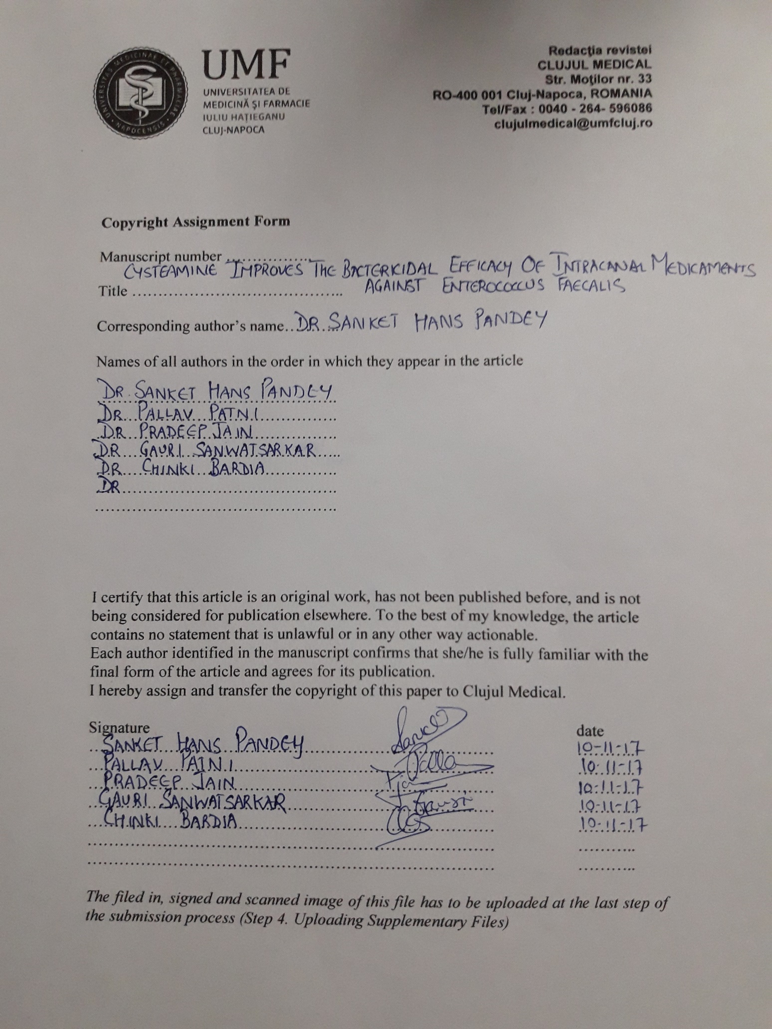 The authors are required to transfer the copyright of the published paper to the journal. This is done by agreeing to sign the Copyright Assignment Form. Whenever the case, authors are also required to send permissions to reproduce material (such as illustrations) from the copyright holder.